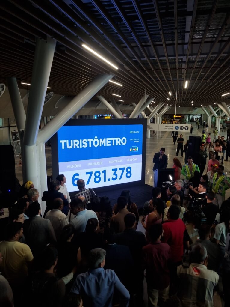 BELÉM (PA) – As políticas desenvolvidas pelo Ministério do Turismo para ampliar a conectividade aérea e fortalecer a promoção do Brasil como destino global já apresentam resultados expressivos. Até o dia 14 de setembro, o país recebeu 6.807.707 visitantes estrangeiros, número inédito que corresponde a 98,5% da meta anual de 6,9 milhões definida pelo Plano Nacional de Turismo (PNT) 2024-2027.